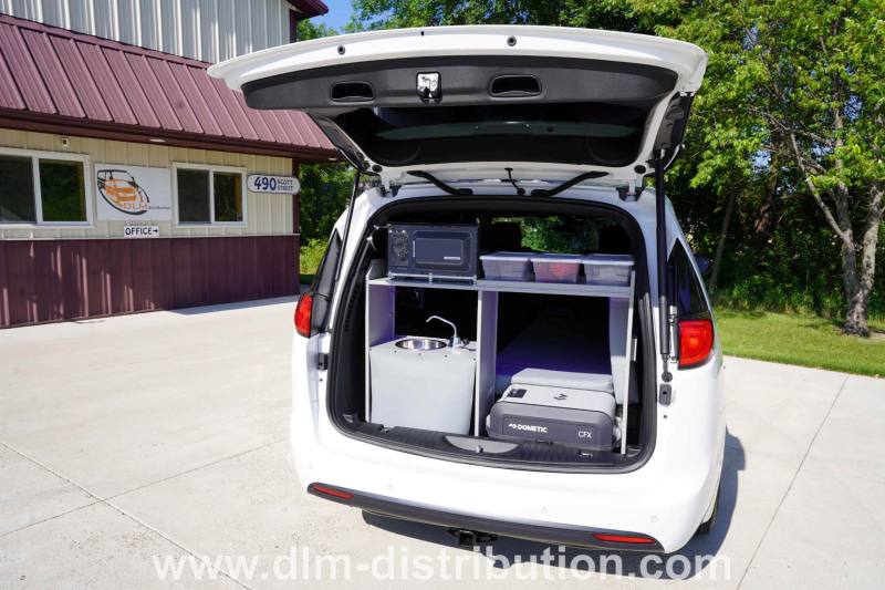 The Ford Transit Connect Mini-T Campervan and Chrysler Pacifica Mini-T Campervan are designed with a well-laid-out interior that comfortably accommodates two people while providing the comfort, convenience, and technology today’s travelers expect. Each Mini-T conversion includes an awning, solar-supported power, a low-profile RV TV antenna, a 10-speed reversible roof fan, and a TV/DVD combo.
