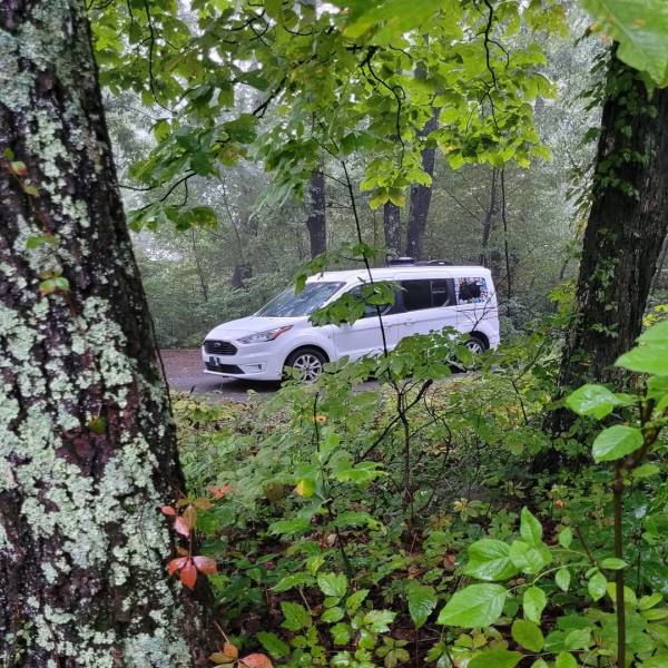 Touring the Blue Ridge Parkway in a Mini-T Campervan — the perfect way to enjoy vibrant fall colors, winding scenic roads, and cozy nights surrounded by nature’s beauty.